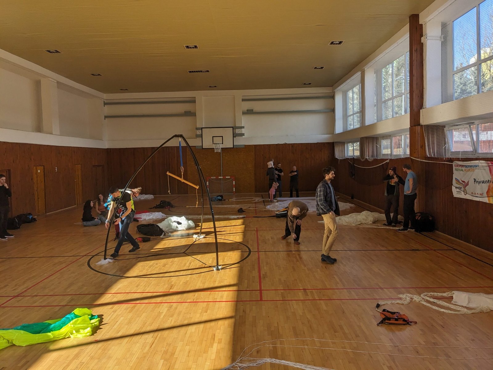 Čo, ale tento rok pribudlo vďaka aktivite členov klubu PGBB, bola možnosť si skúsiť záložku vyhodiť zo svojej sedačky. Na to nám poslúžil rám na 3 nohách, na ktorom bola zavesená hrazda. S potešením môžeme konštatovať úspech, keďže odhodiť záložku si skúsil každý a každému sa to podarilo. V kritickej situácii je dobré mať nacvičený tento pohyb odhadzovania na svojej sedačke, a mať ho v ruke. Veríme, že aj takto sme zvýšili bezpečnosť každého z nás vo vzduchu.